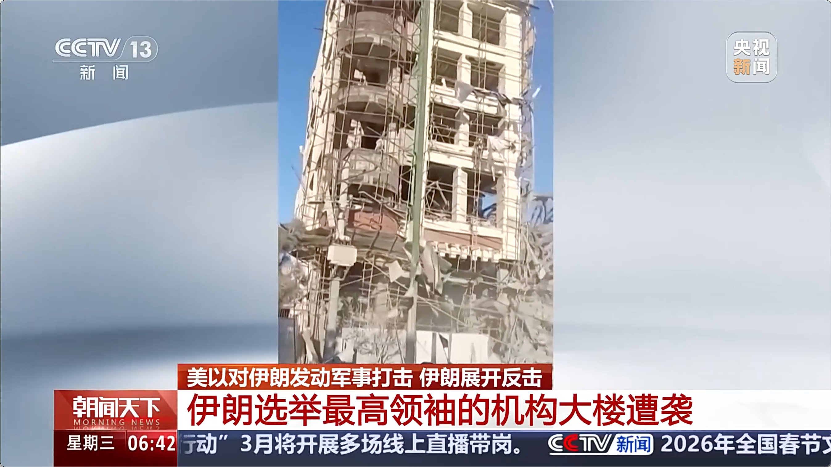 1:06据总台记者3日消息,位于伊朗首都德黑兰以南库姆市的伊朗专家会议办公楼当天遭到以色列袭击。伊朗媒体公布的视频显示,该办公楼已完全被炸成废墟。伊朗库姆省官员表示,袭击已造成6人死亡、30人受伤。
