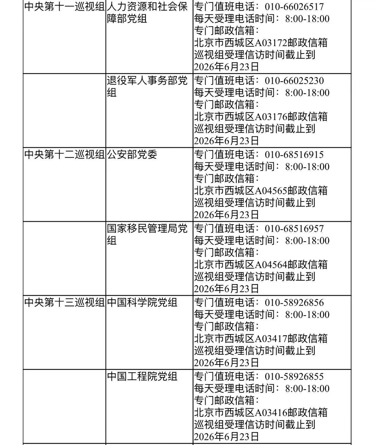 已进驻中央巡视组联络方式: