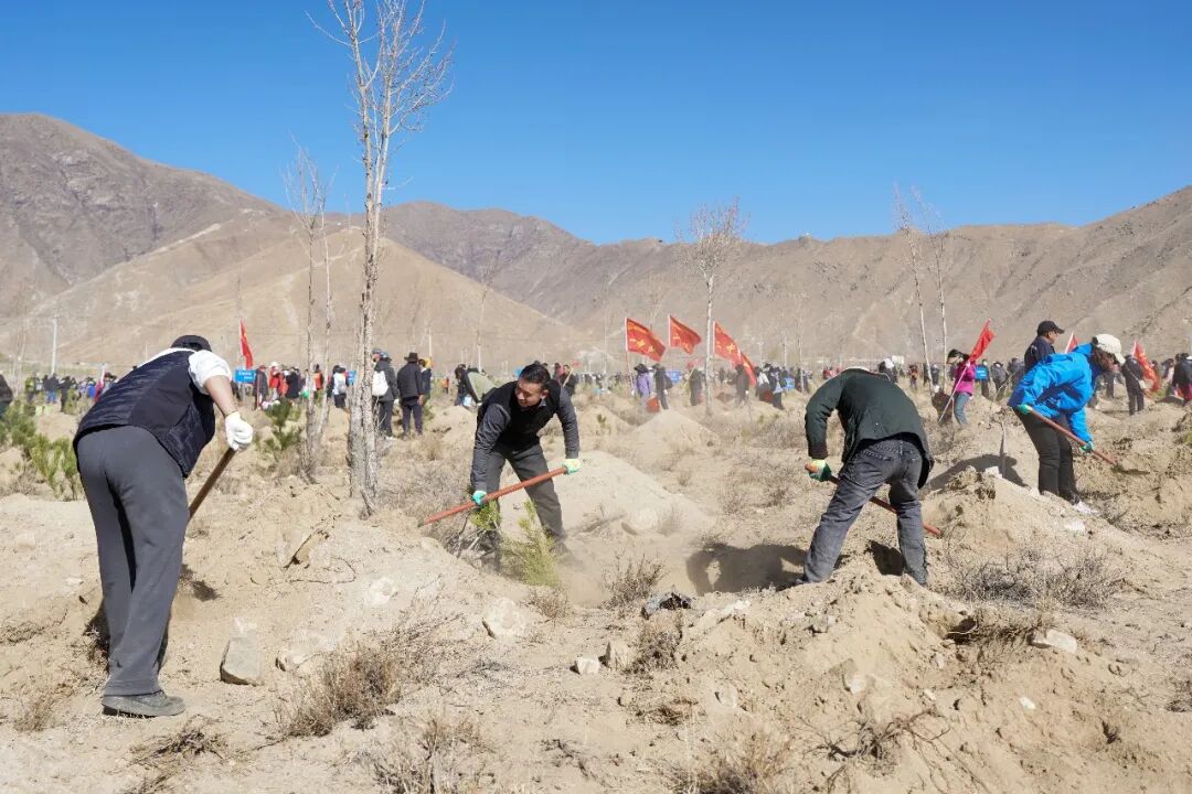 3月20日,正值高原春季造林黄金窗口期,曲水县南木乡江村的植树现场热火朝天,全区区直、市直各单位党员干部代表齐聚于此,同步开展春季义务植树主题党日活动,以党建红引领生态绿,以实干担当厚植高原绿色根基,高标准推进南北山绿化春季造林攻坚,全力守护雪域高原生态安全。
