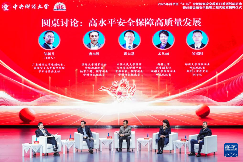 中央财经大学与北京市昌平区联合启动2026年“4·15”全民国家安全教育日系列活动,嘉宾在活动中围绕国家安全主题展开对话(4月8日摄)。新华社发
