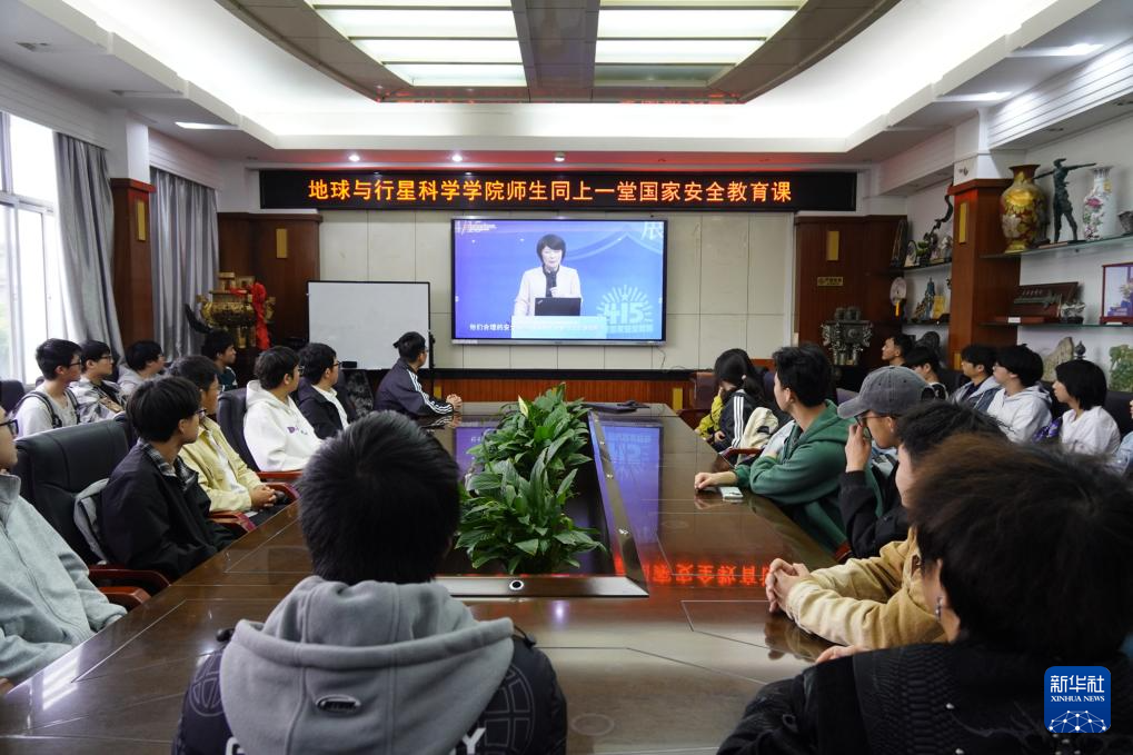 4月15日,中国地质大学(武汉)组织师生集中观看“千万师生同上一堂国家安全教育课”。新华社发