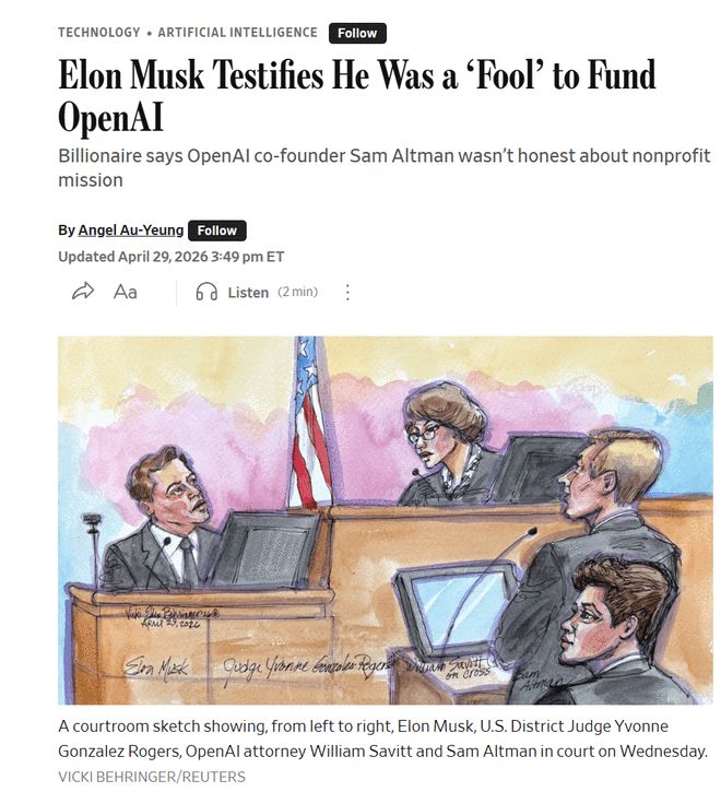 “我简直是个冤大头!”马斯克舌战OpenAI律师
